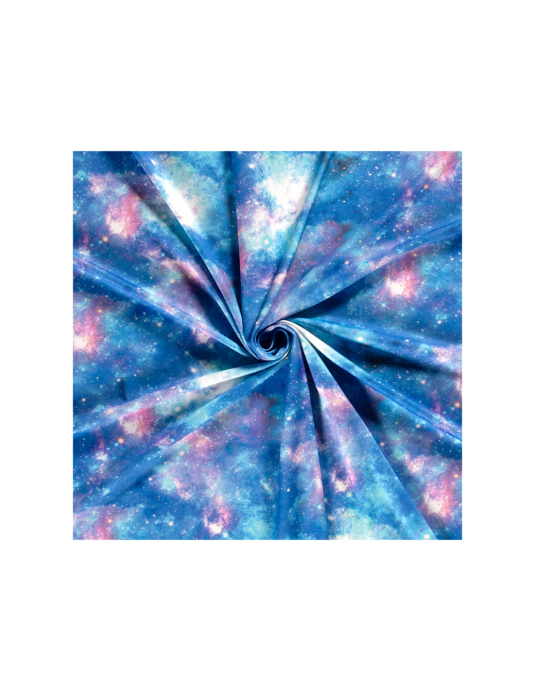 Sportlycra med rymdmönster i rosa och blått. Stretchigt tyg som lämpar sig att sy egna träningskläder av, till exempel tights.