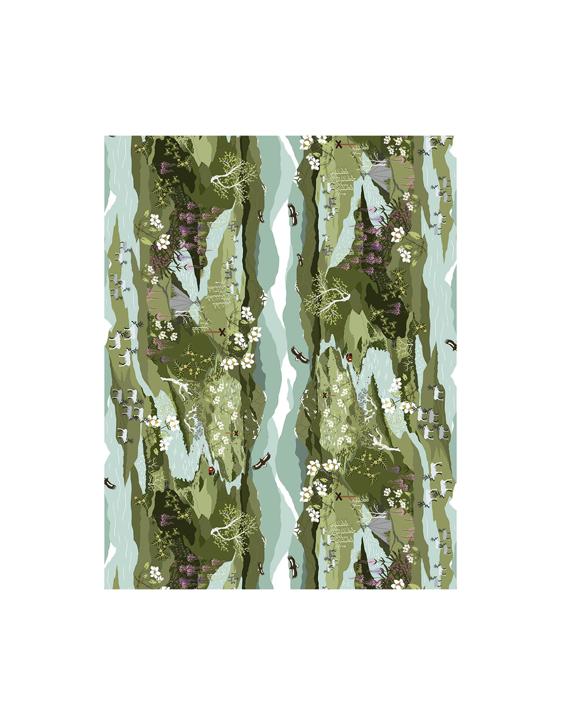 Fjällvandring Bård i Grön/Turkos från Arvidssons Textil. Duktyg med fantastiskt fjällmotiv, finns i flera färger. Fjällvandring finns även som gardinkappa på metervara ca 55cm, gardinkappa på metervara ca 68cm och bomullsjersey.