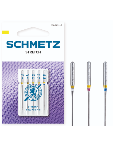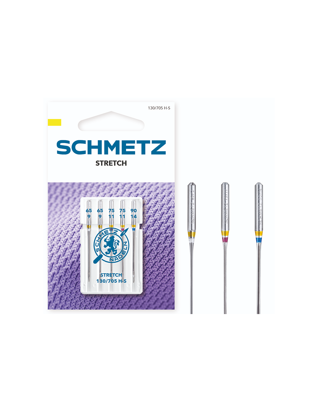 Stretchnålar från Schmetz. 5-pack symaskinsnålar med medelkulspets för elastiska material och högelastiska stickade tyger.
