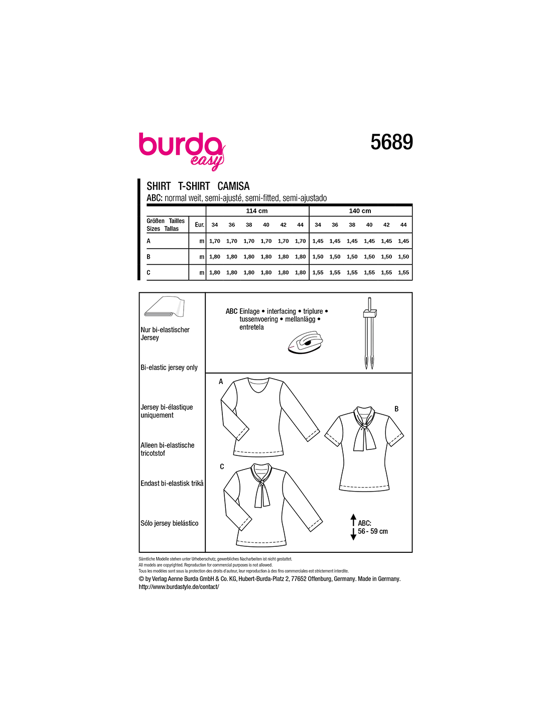 Vill du ha hjälp att tolka tygåtgången? Skicka ett mail till info@tygcenter.se med rubrik Burda 5689 så hjälper vi dig.