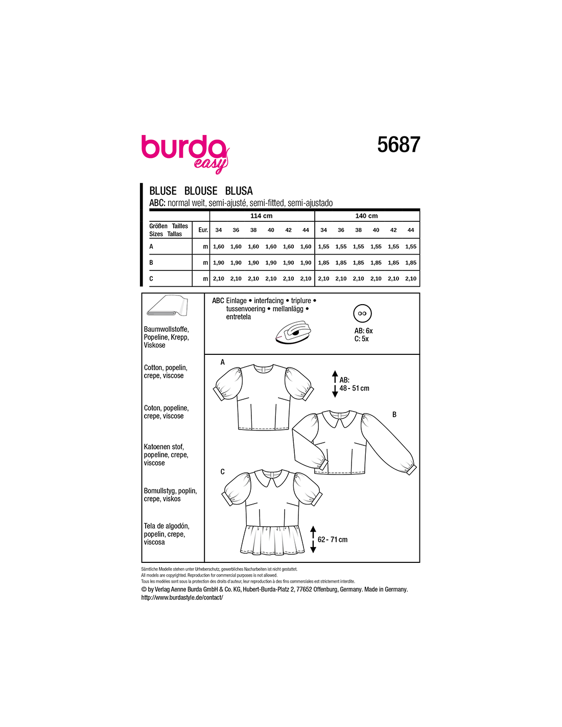 Vill du ha hjälp att tolka tygåtgången? Skicka ett mail till info@tygcenter.se med rubrik Burda 5687 så hjälper vi dig.