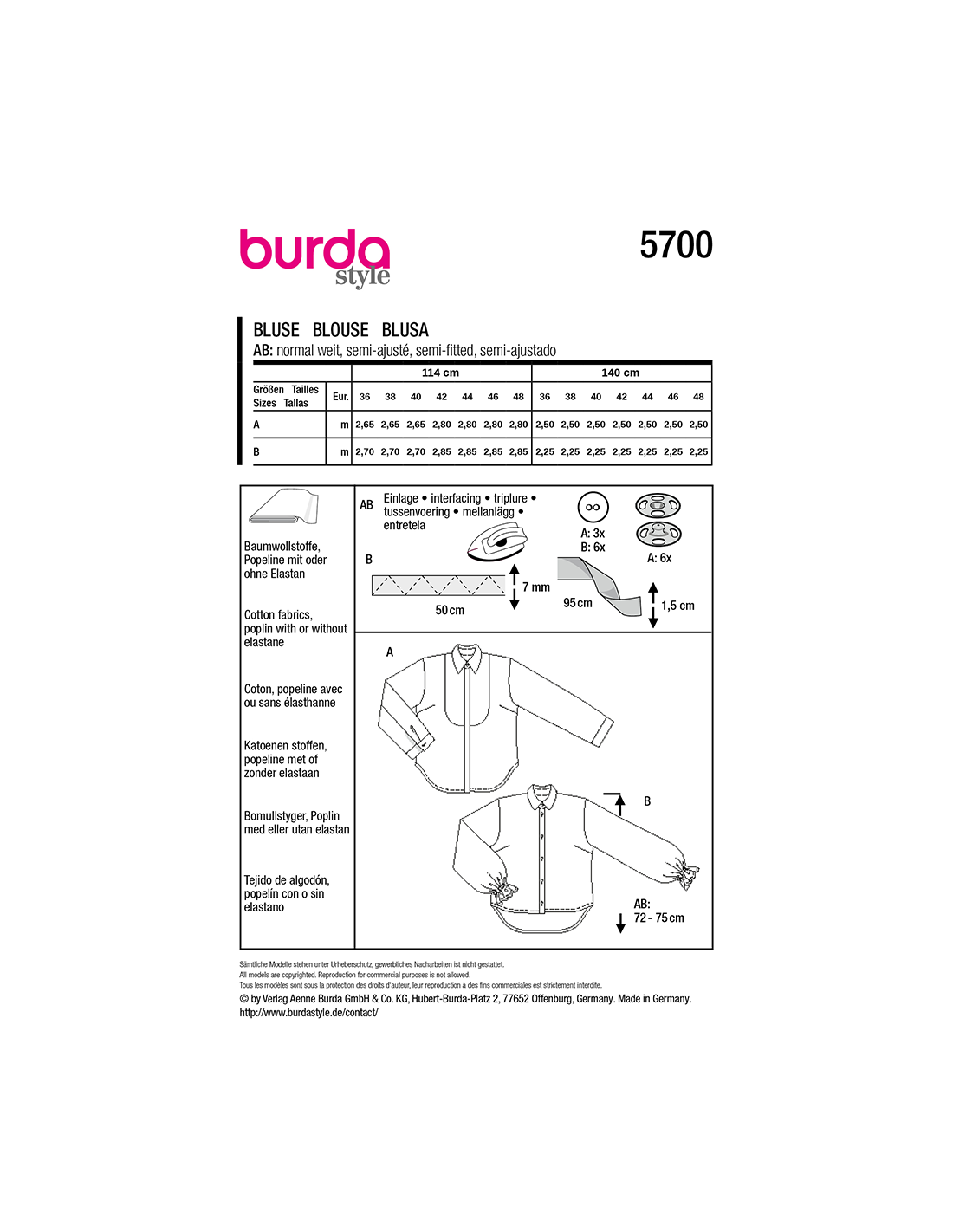 Vill du ha hjälp att tolka tygåtgången? Skicka ett mail till info@tygcenter.se med rubrik Burda 5700 så hjälper vi dig.