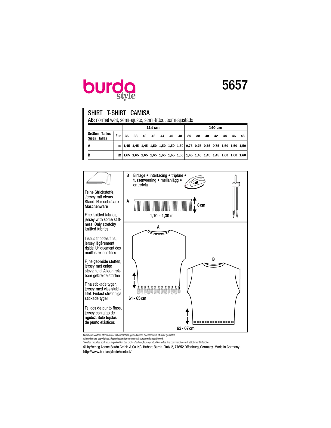 Vill du ha hjälp att tolka tygåtgången? Skicka ett mail till info@tygcenter.se med rubrik Burda 5657 så hjälper vi dig.