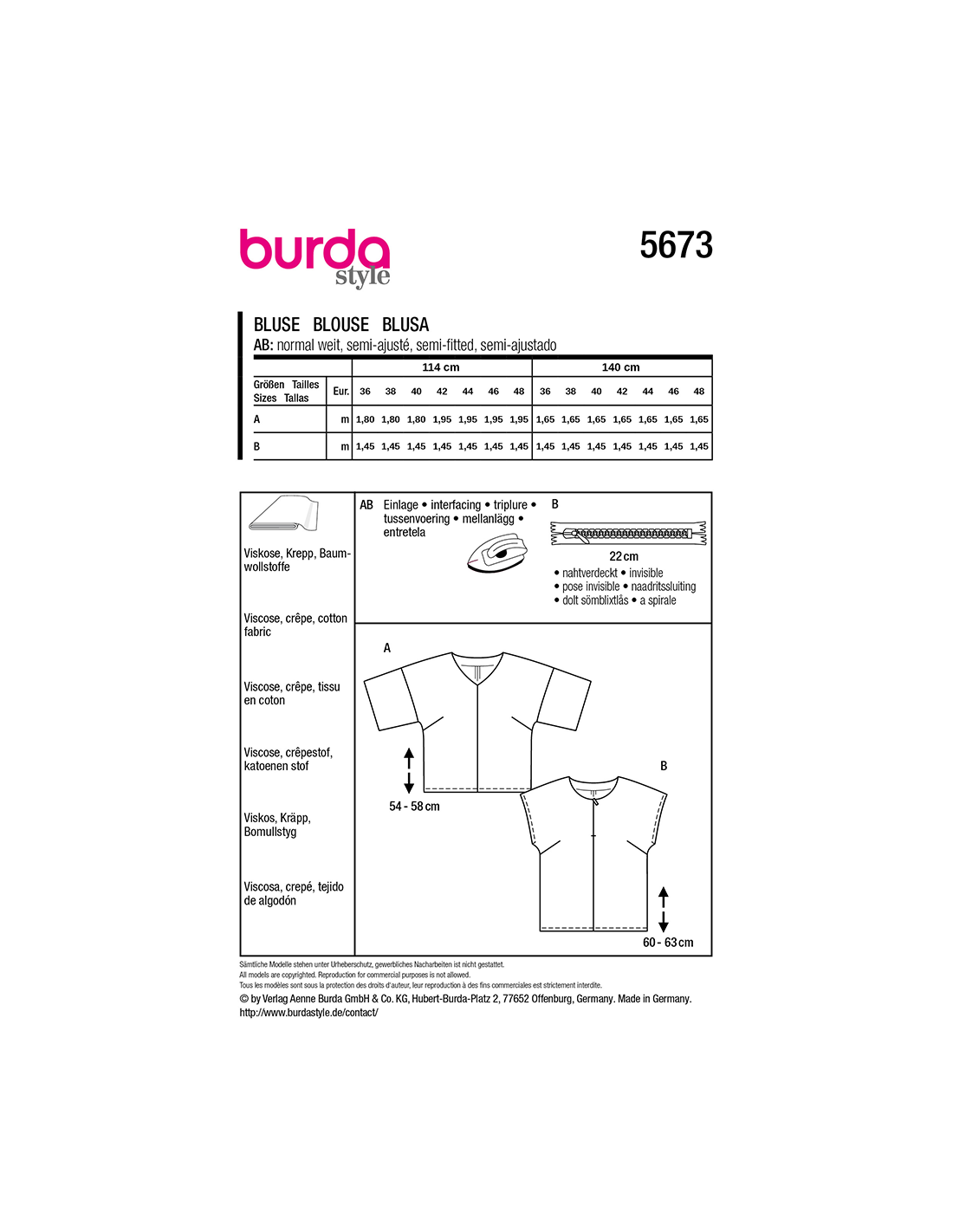 Vill du ha hjälp att tolka tygåtgången? Skicka ett mail till info@tygcenter.se med rubrik Burda 5673 så hjälper vi dig.