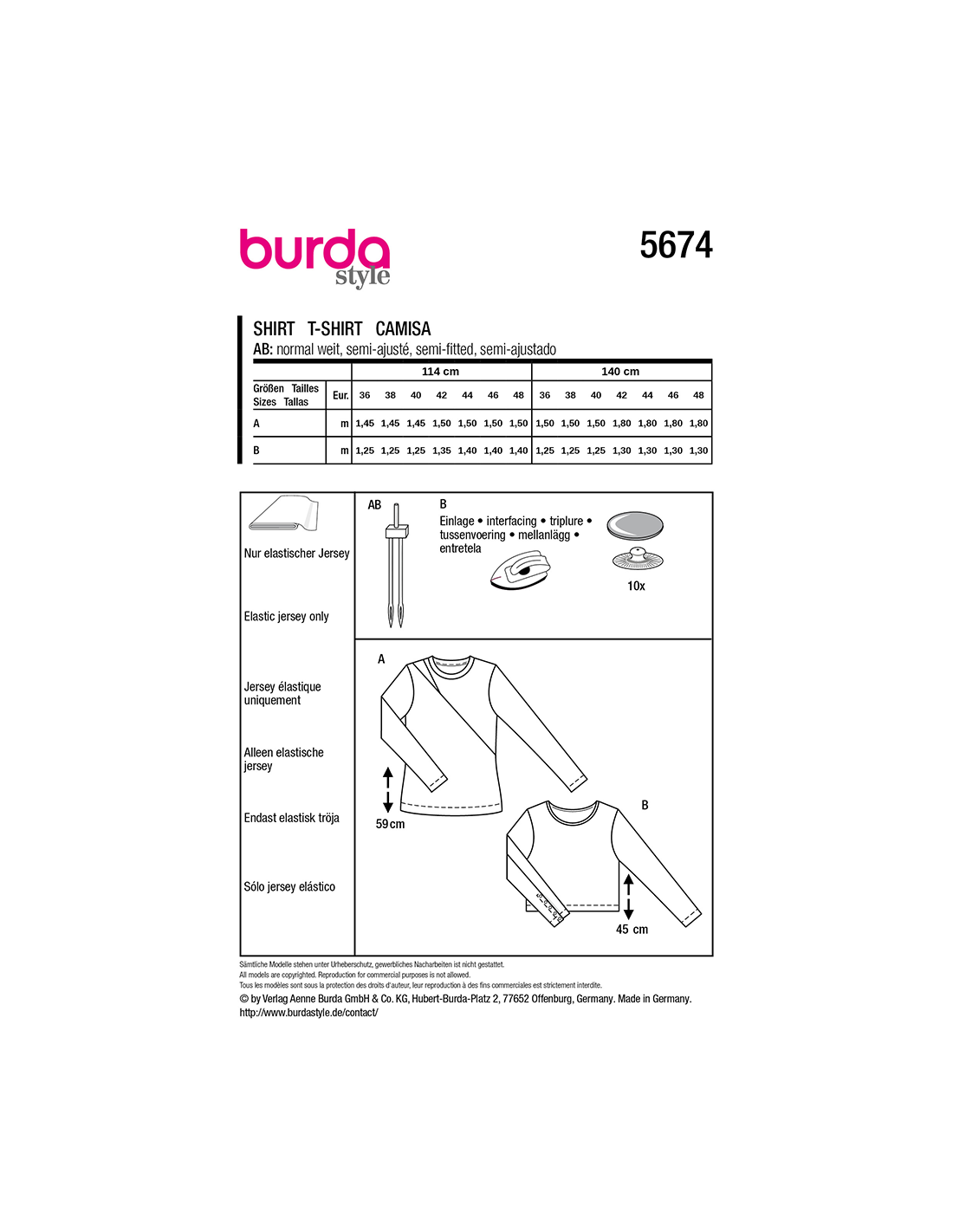 Vill du ha hjälp att tolka tygåtgången? Skicka ett mail till info@tygcenter.se med rubrik Burda 5674 så hjälper vi dig.