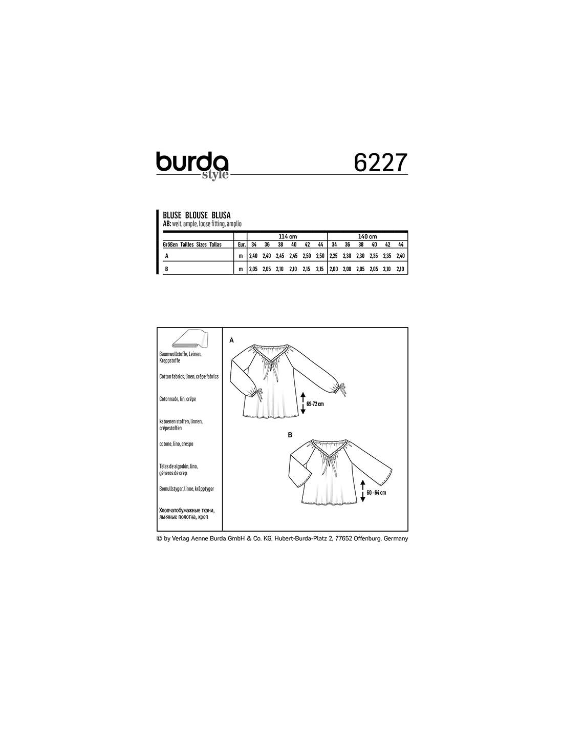 Vill du ha hjälp att tolka tygåtgången? Skicka ett mail till info@tygcenter.se med rubrik Burda 6227 så hjälper vi dig.