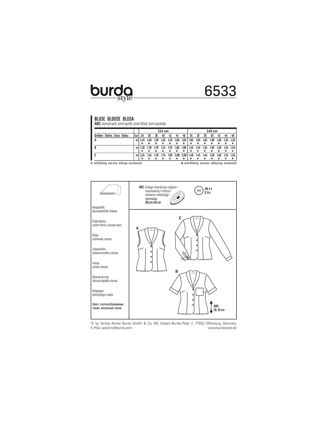 Vill du ha hjälp att tolka tygåtgången? Skicka ett mail till info@tygcenter.se med rubrik Burda 6533 så hjälper vi dig.