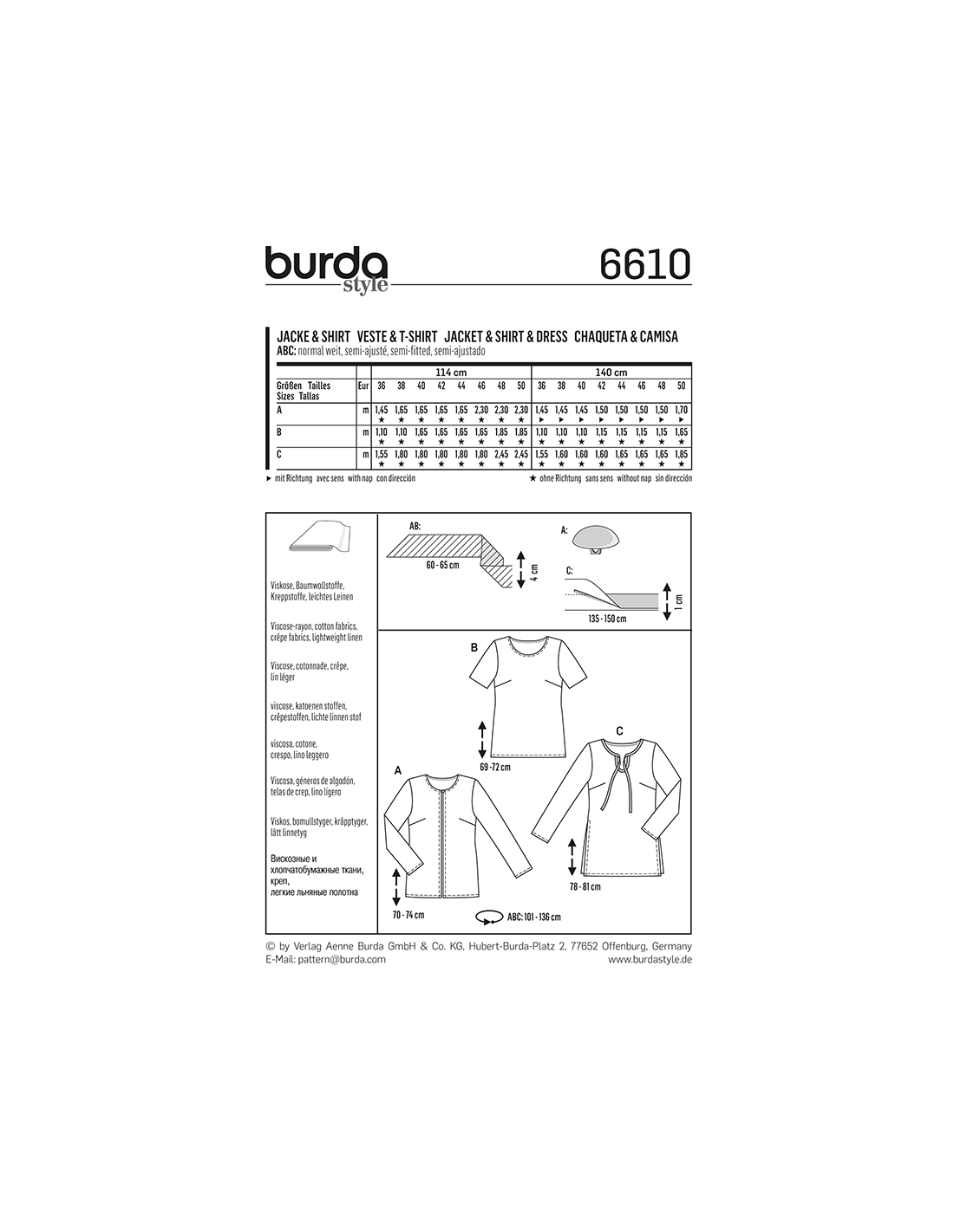 Vill du ha hjälp att tolka tygåtgången? Skicka ett mail till info@tygcenter.se med rubrik Burda 6610 så hjälper vi dig.