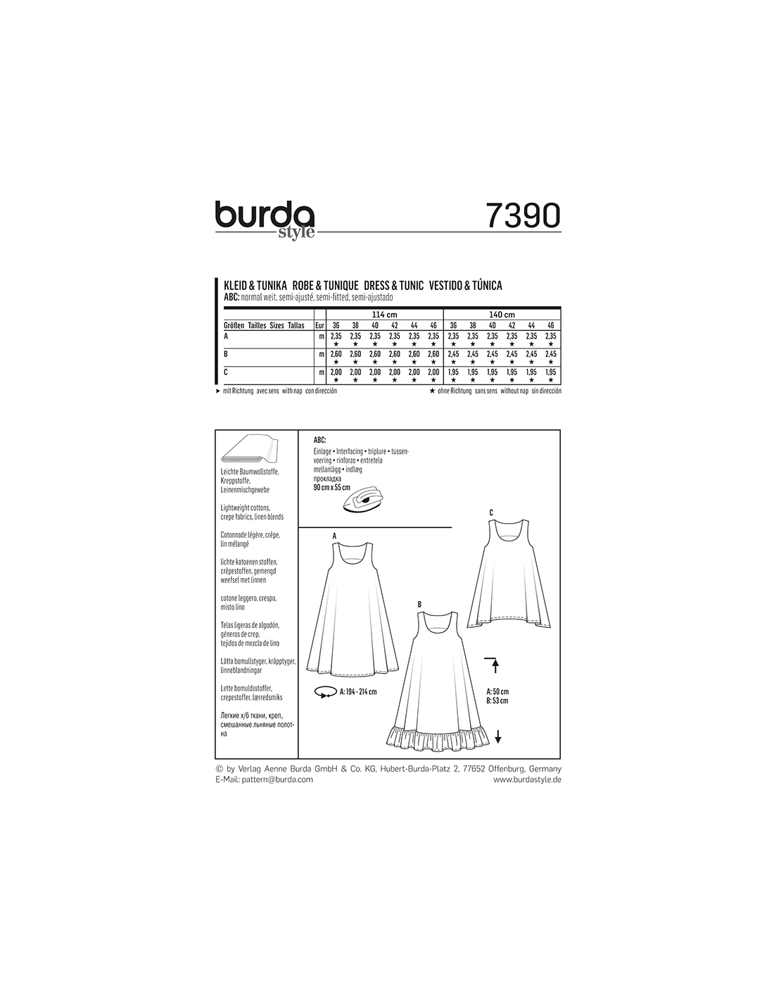Vill du ha hjälp att tolka tygåtgången? Skicka ett mail till info@tygcenter.se med rubrik Burda 7390 så hjälper vi dig.