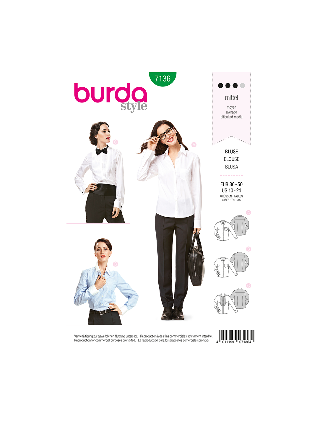Burda symönster 7136 - Skjorta - Strl 36-50