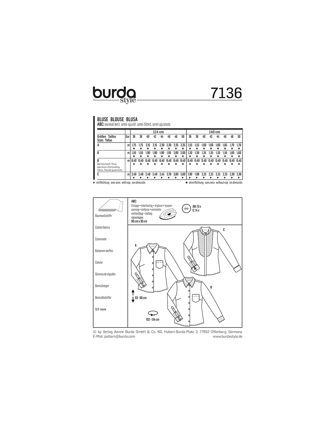 Vill du ha hjälp att tolka tygåtgången? Skicka ett mail till info@tygcenter.se med rubrik Burda 7136 så hjälper vi dig.