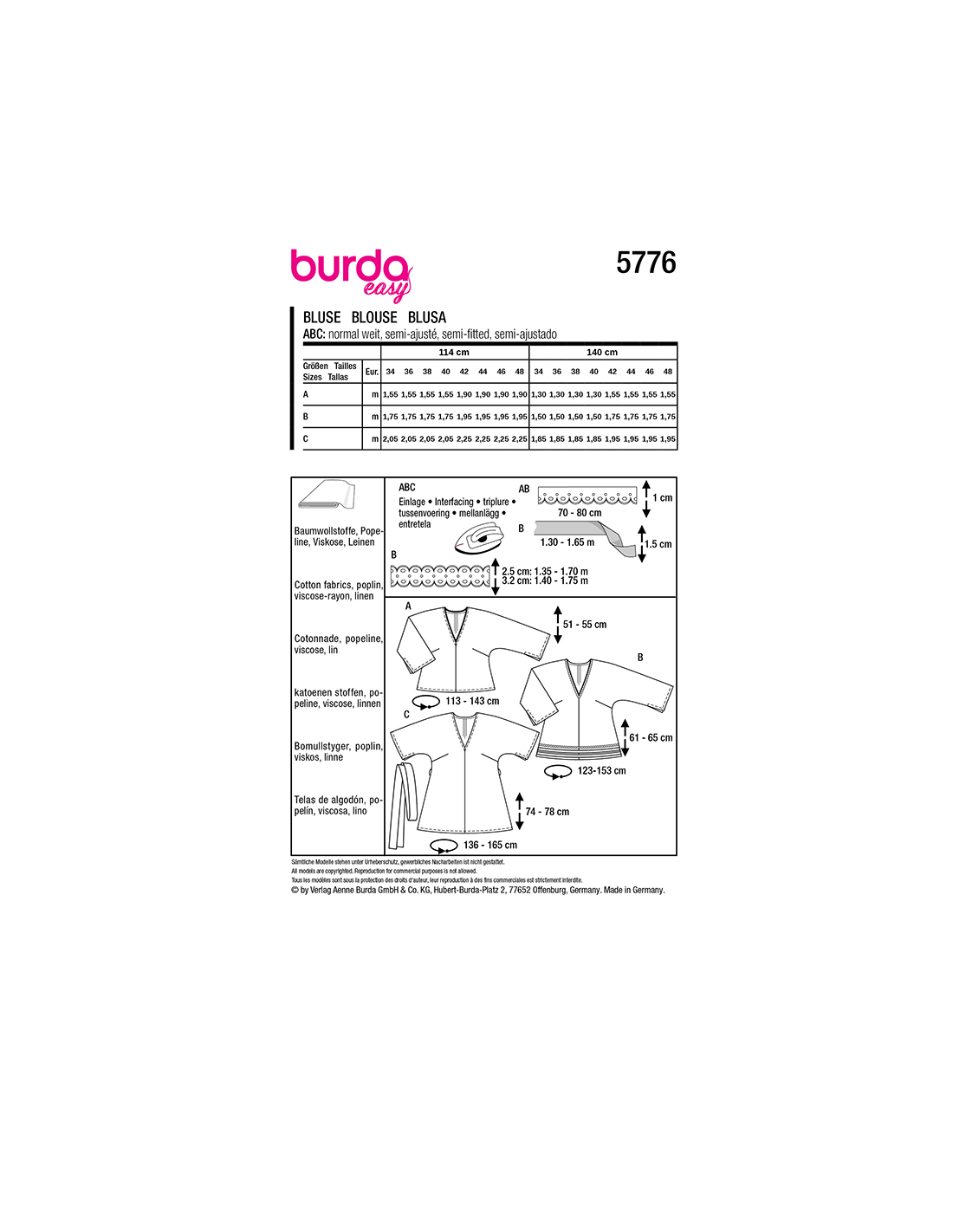 Vill du ha hjälp att tolka tygåtgången? Skicka ett mail till info@tygcenter.se med rubrik Burda 5776 så hjälper vi dig.