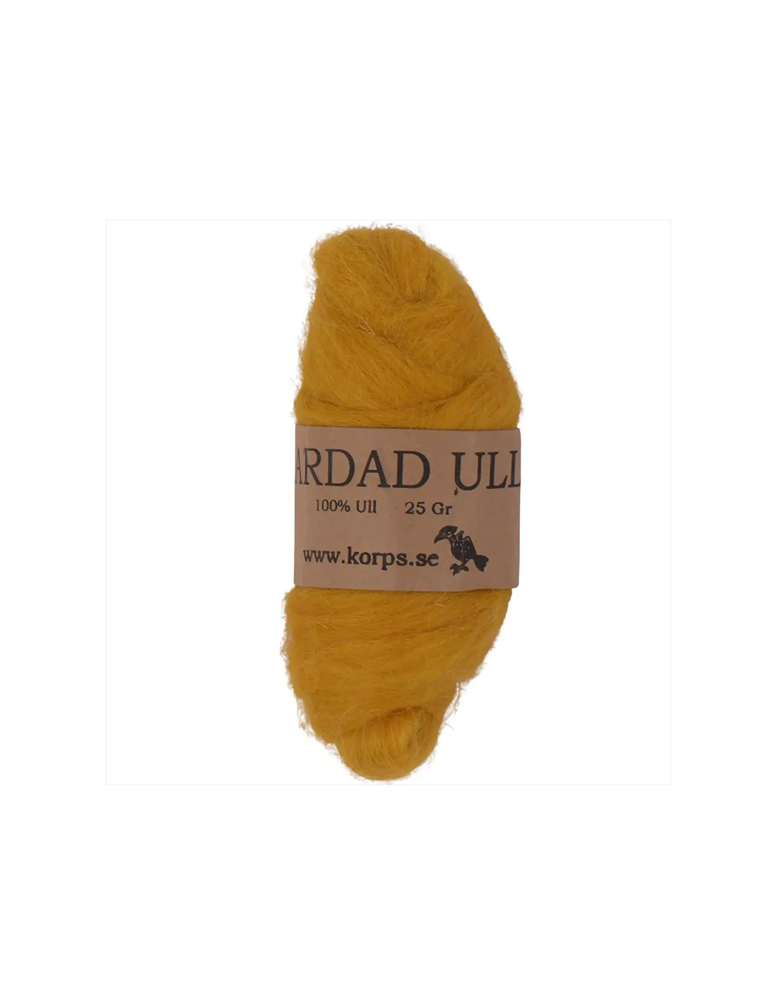 Gul kardad ull från Korps. Idealisk för både våt- och torrtovning, lättanvänt till alla typer av tovningsprojekt, för både nybörjare och erfarna användare.