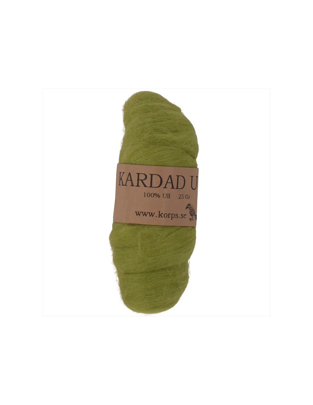 Ljusgrön kardad ull från Korps. Idealisk för både våt- och torrtovning, lättanvänt till alla typer av tovningsprojekt, för både nybörjare och erfarna användare.