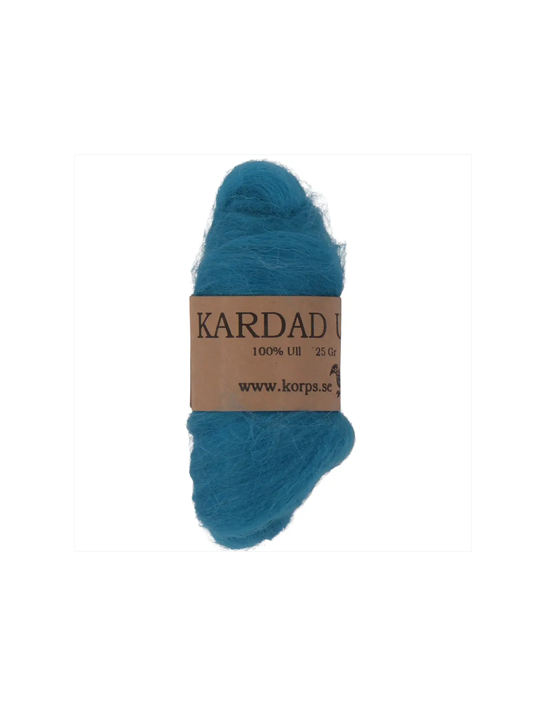 Turkos kardad ull från Korps. Idealisk för både våt- och torrtovning, lättanvänt till alla typer av tovningsprojekt, för både nybörjare och erfarna användare.