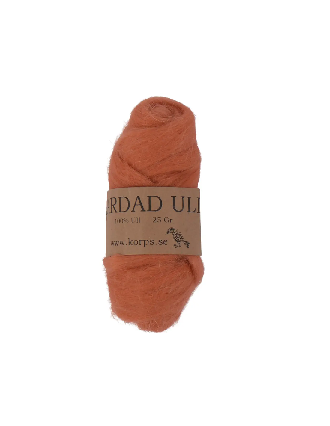 Orange kardad ull från Korps. Idealisk för både våt- och torrtovning, lättanvänt till alla typer av tovningsprojekt, för både nybörjare och erfarna användare.