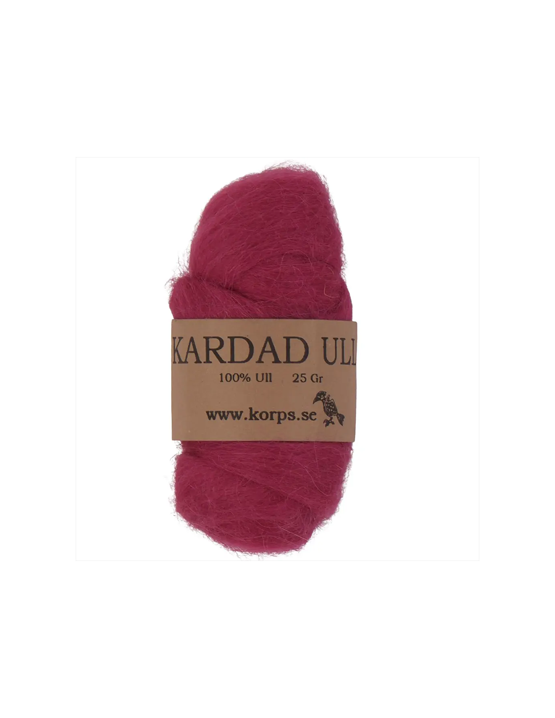 Cerise kardad ull från Korps. Idealisk för både våt- och torrtovning, lättanvänt till alla typer av tovningsprojekt, för både nybörjare och erfarna användare.