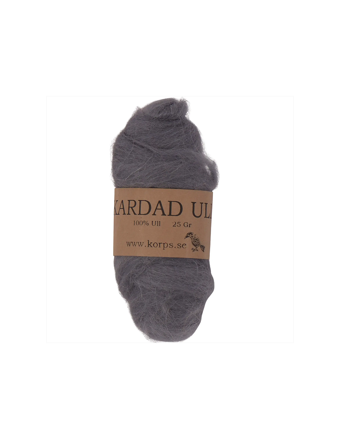 Grå kardad ull från Korps. Idealisk för både våt- och torrtovning, lättanvänt till alla typer av tovningsprojekt, för både nybörjare och erfarna användare.