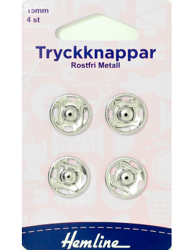 Hemline Tryckknappar Förnicklade 15mm